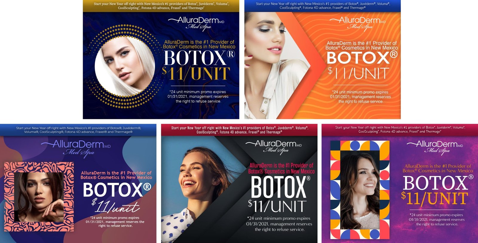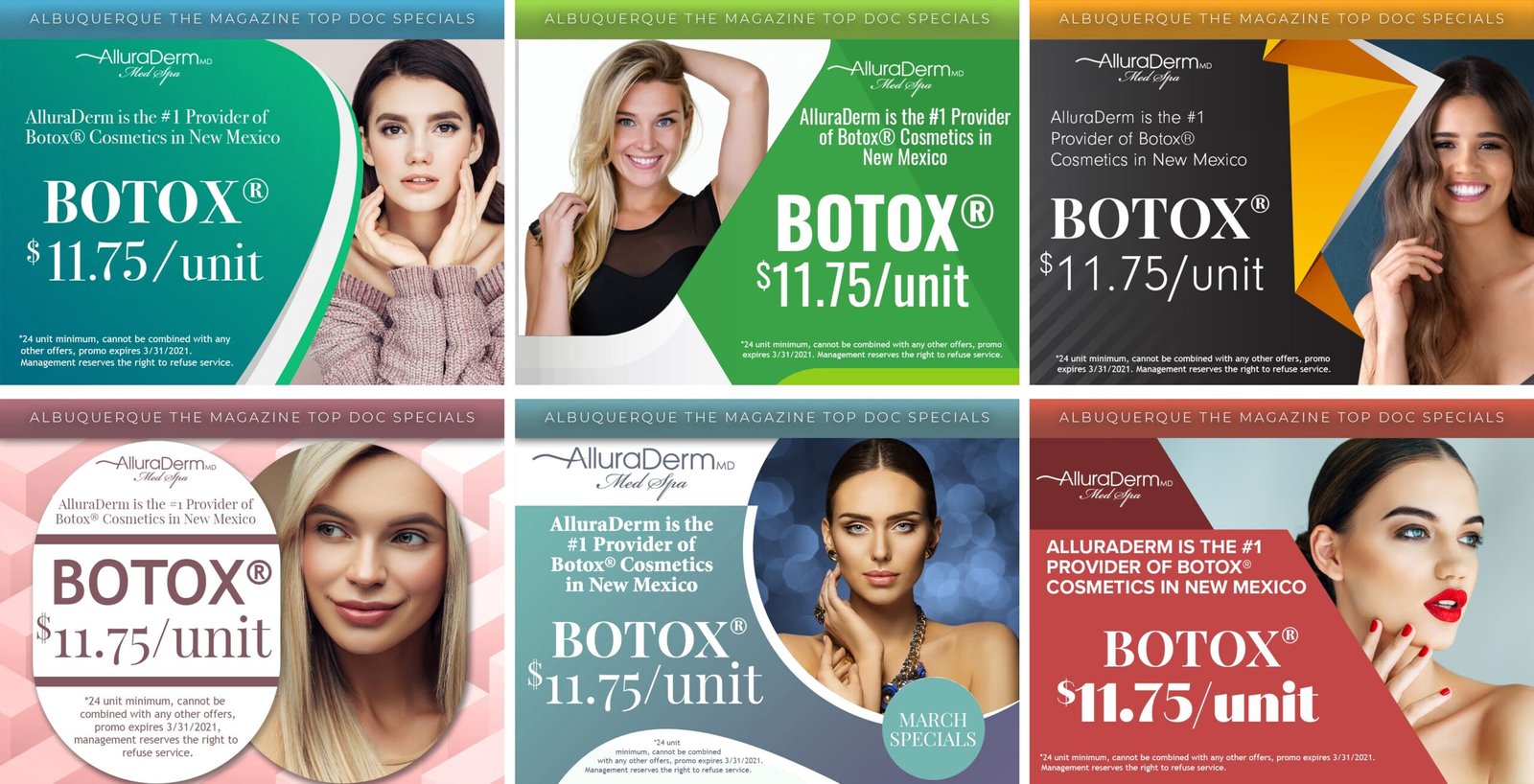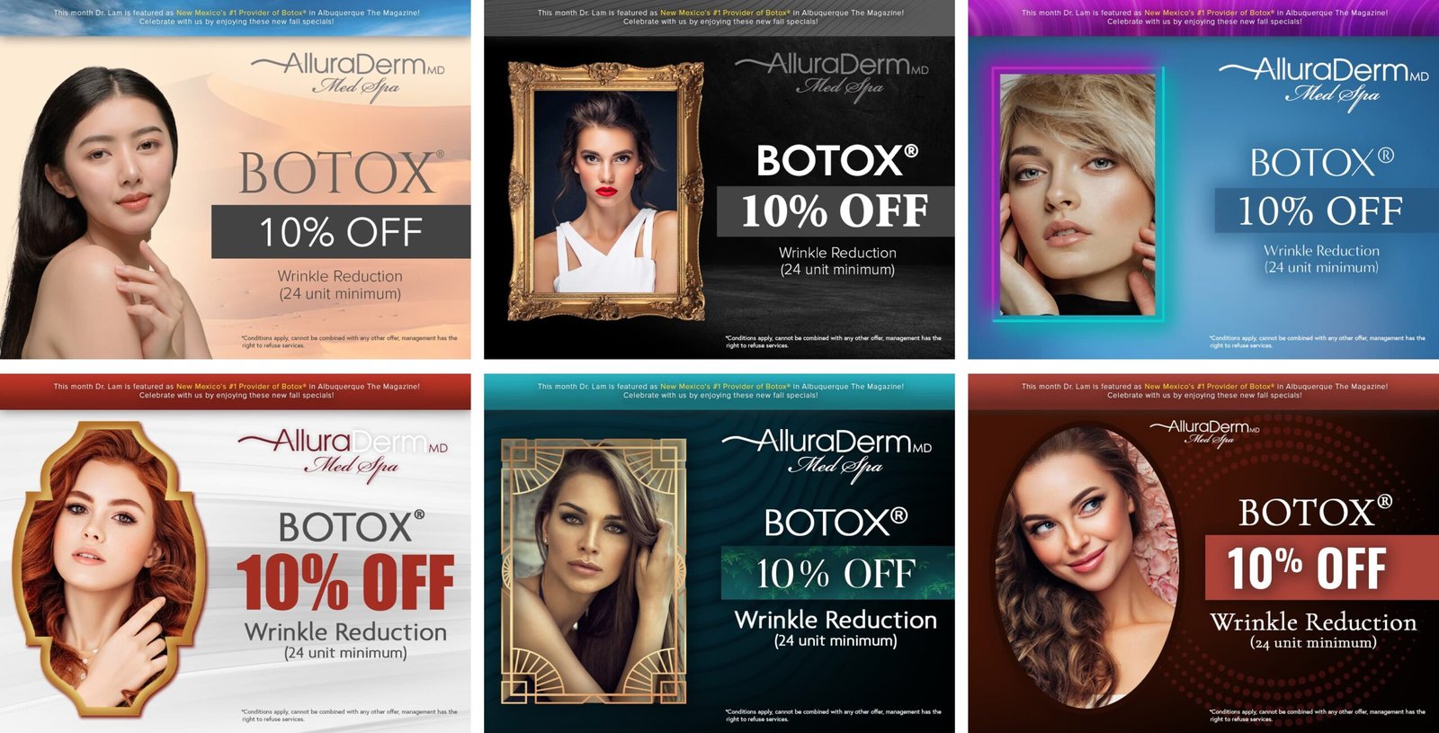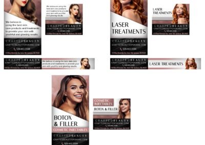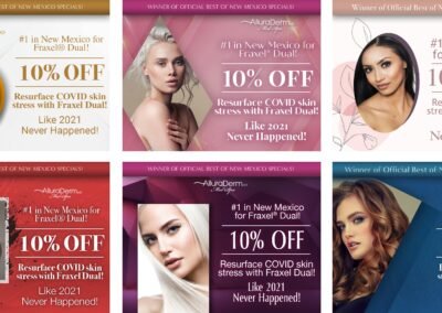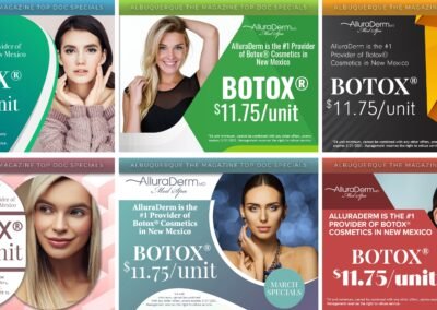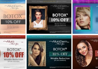 This section features monthly marketing campaigns created for a medical practice, where each set of promotional specials was developed into multiple unique design variations with different themes. The work highlights versatility, consistency, and the ability to produce cohesive designs across ongoing campaigns.