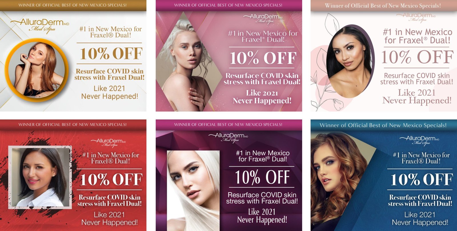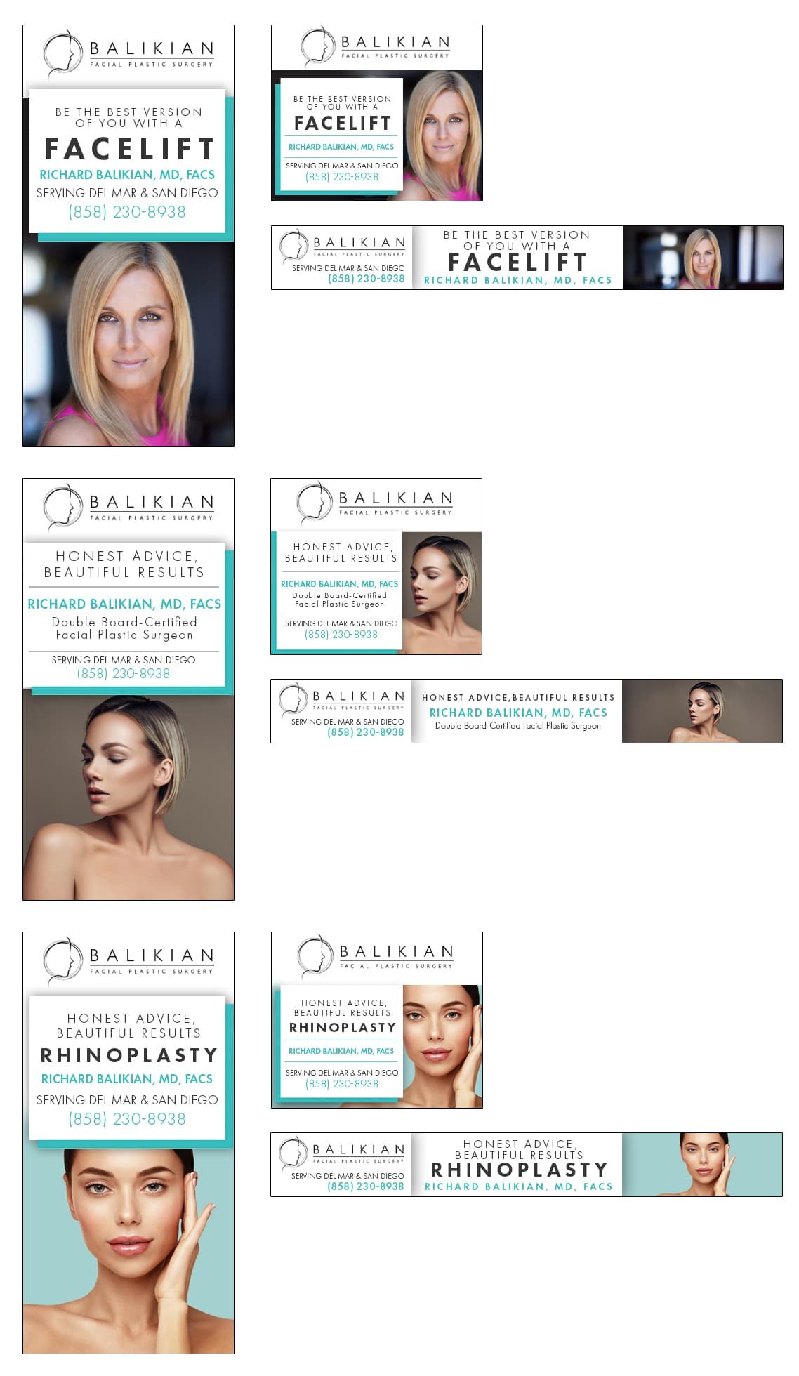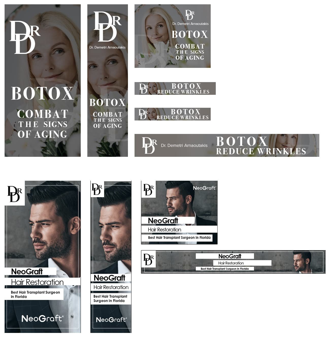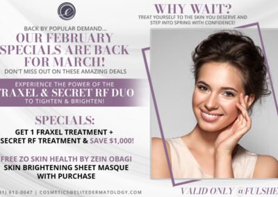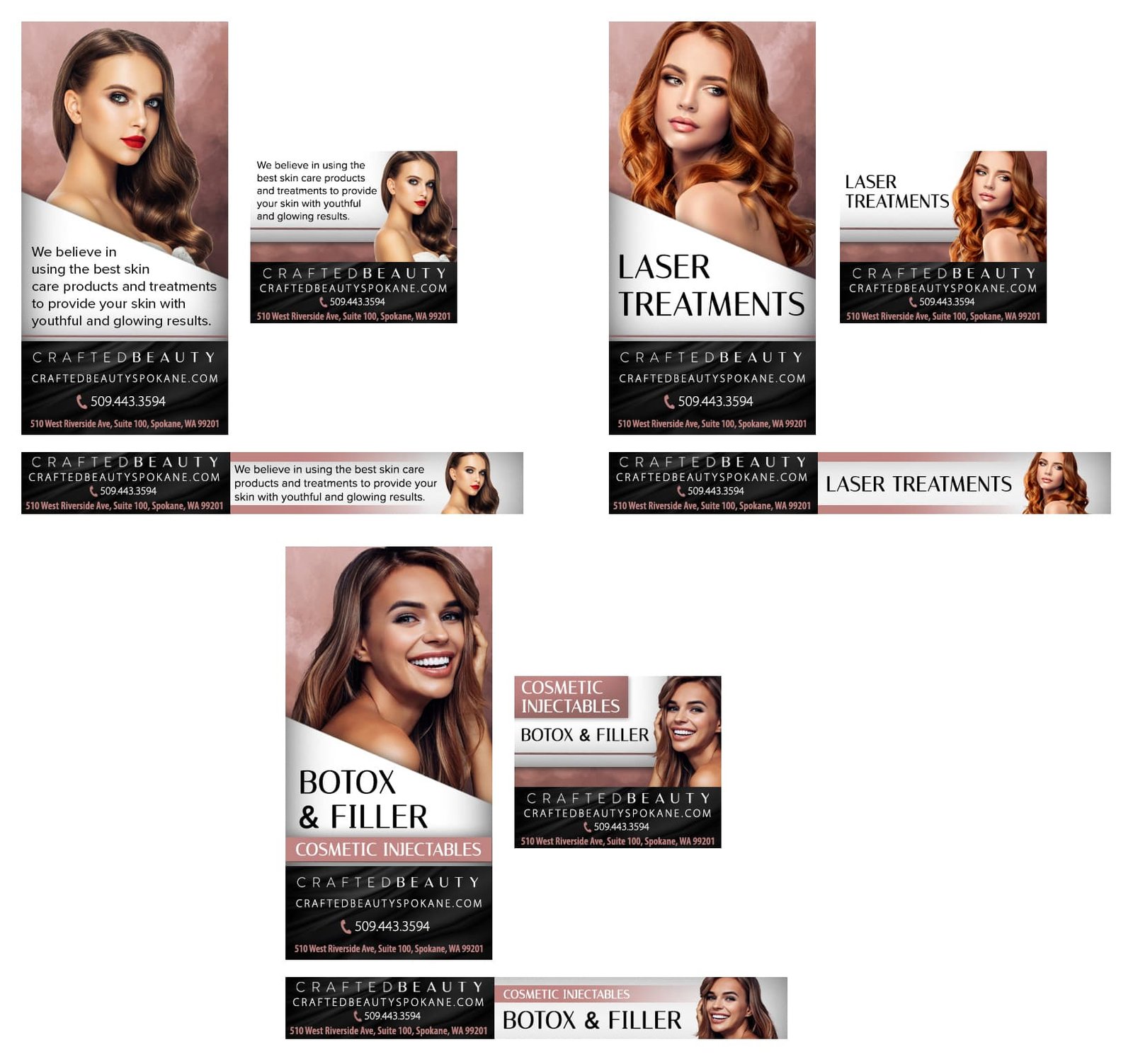 This section features monthly marketing campaigns created for a medical practice, where each set of promotional specials was developed into multiple unique design variations with different themes. The work highlights versatility, consistency, and the ability to produce cohesive designs across ongoing campaigns.